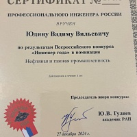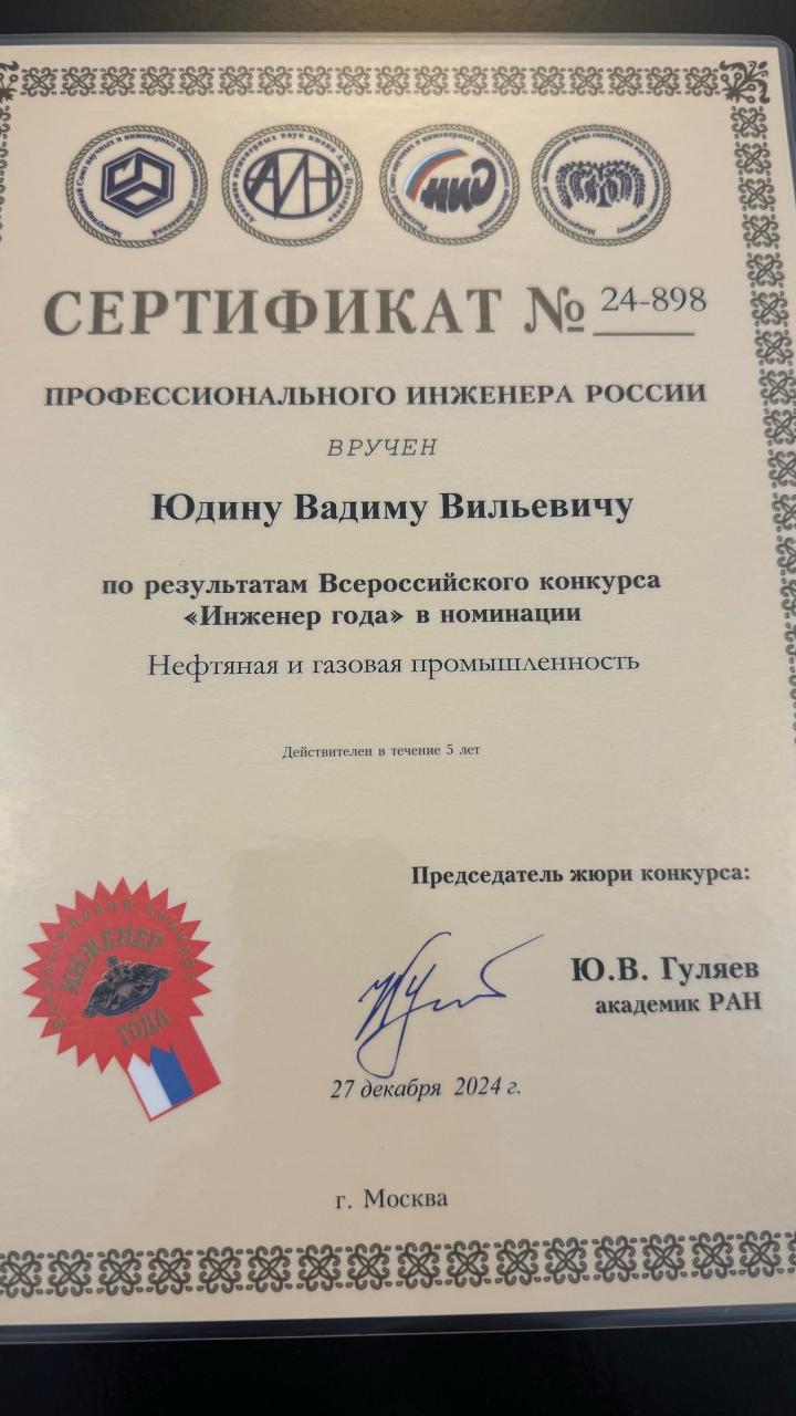 Вадим Юдин, главный специалист отдела технического контроля и риск-менеджмента производственно-технического управления стал лауреатом XXV Всероссийского конкурса «Инженер года – 2024». По результатам конкурса нашему коллеге присвоено звание «Профессиональный инженер России» с вручением соответствующего сертификата и знака по версии «Профессиональные инженеры».