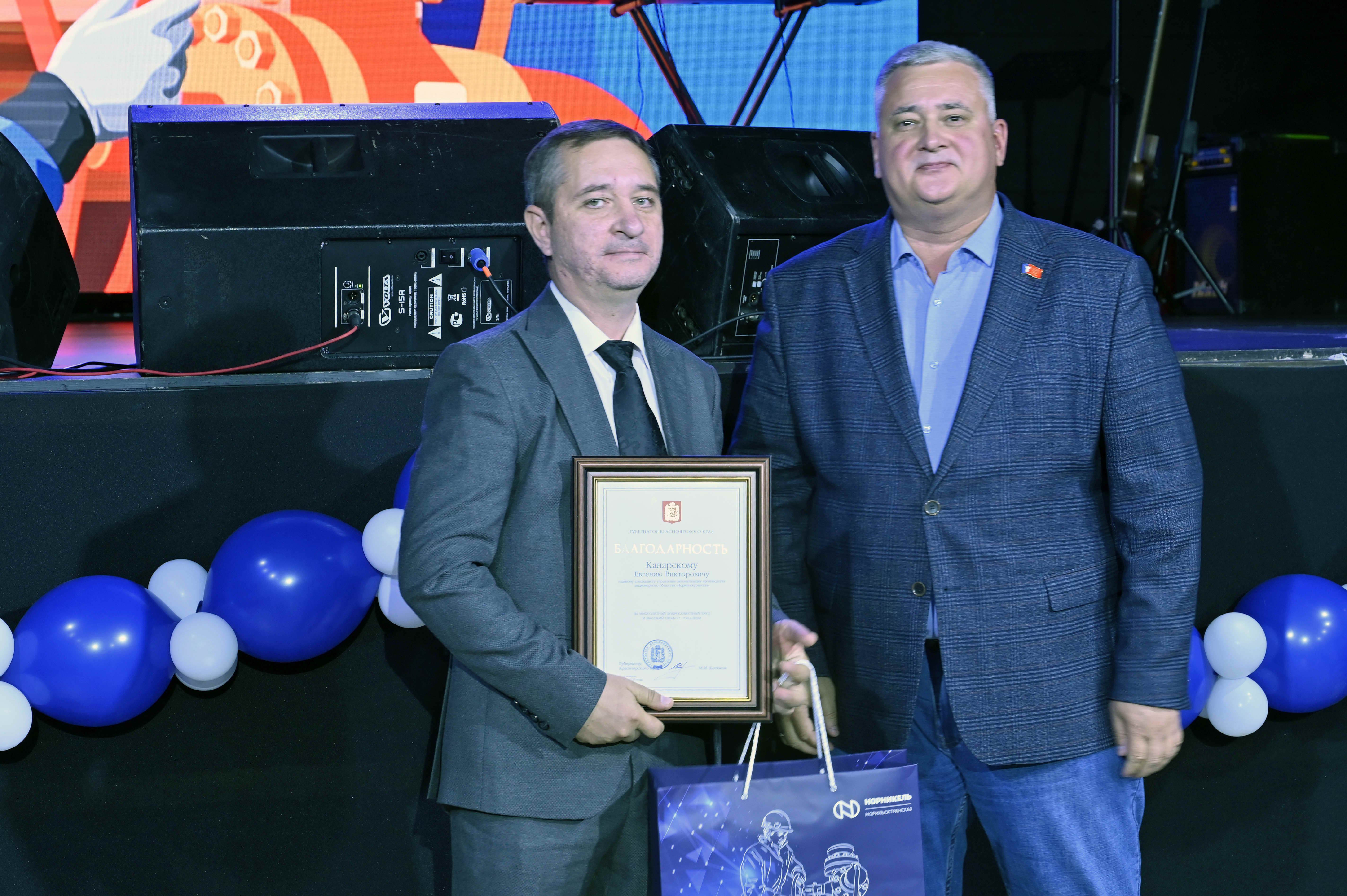С приветственными словами к работникам обратился Константин Малахов, и. о. генерального директора АО «Норильскгазпром», поблагодарив коллектив АО «Норильсктрансгаз» за плодотворное сотрудничество: «Наши предприятия тесно сотрудничают, и мы работаем над одним важным делом, выполняя его надежно и эффективно. Хочу пожелать безопасных условий труда, крепкого здоровья, удачи в делах». И, конечно, какой же праздник без подарков – Константин Малахов вручил Марку Шилыковскому, генеральному директору АО «Норильсктрансгаз», сертификат на покупку в туристическом магазине, ведь сотрудники Общества так любят проводить время наедине с природой.