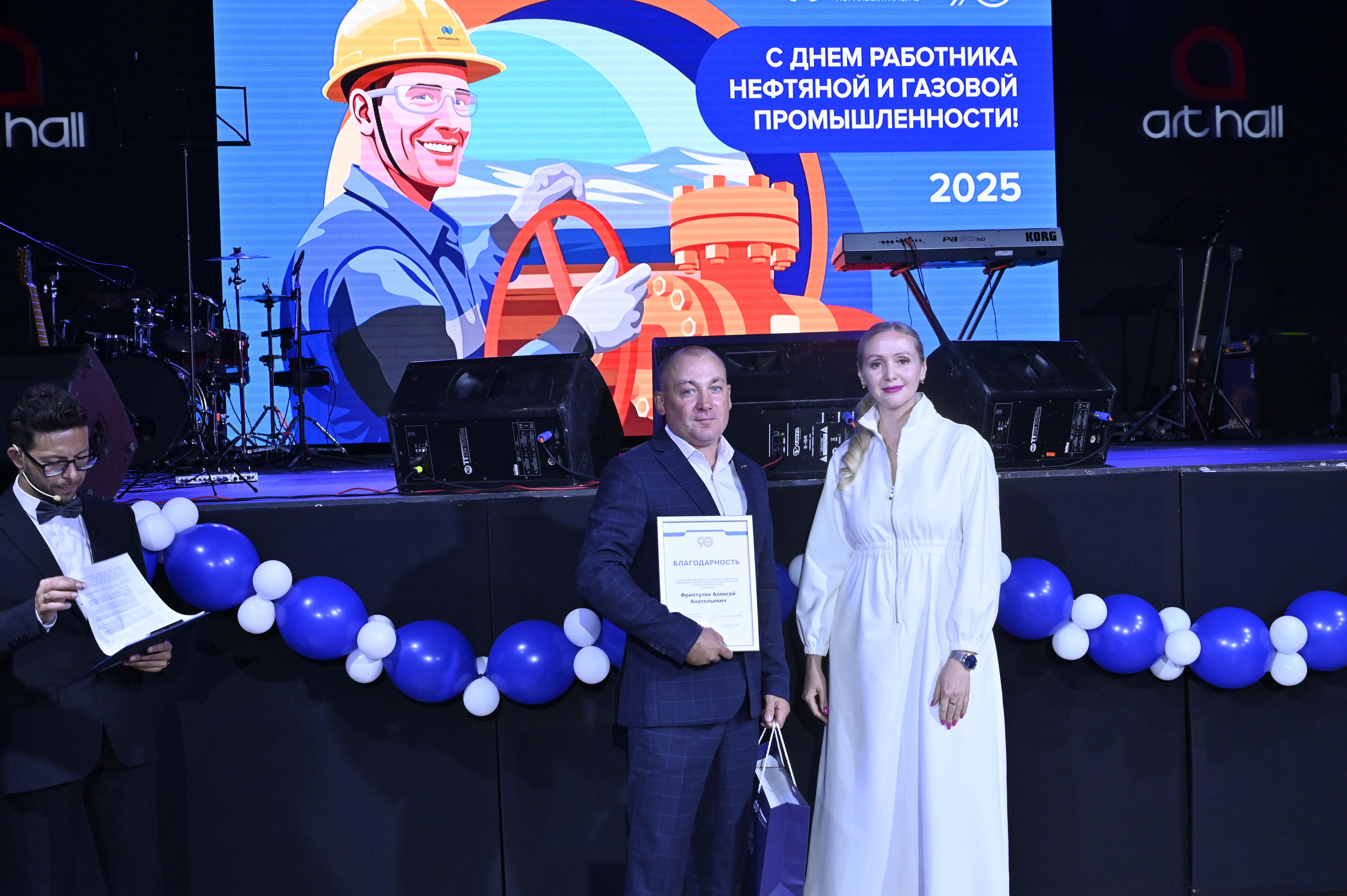 Слова благодарности и поздравления прозвучали в этот праздничный вечер и от Сергея Соколова, заместителя генерального директора по производству – главного инженера АО «Норильсктрансгаз»: «День работников нефтяной и газовой промышленности – это праздник сильных духом, мужественных, целеустремленных людей. Наша профессия требует полной самоотдачи, профессионализма и незамедлительного принятия решения в определенных ситуациях. А еще газовики – романтики. Сочетание этих качеств позволяет нам решать самые сложные задачи в условиях суровой заполярной тундры. Поздравляю всех с праздником, желаю крепкого здоровья и профессионального роста».