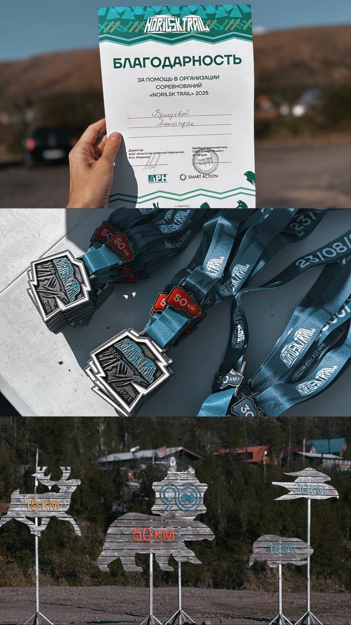 «Субботнее утро началось с того, что я стала частью настоящего спортивного марафона! Эти спортсмены — настоящие герои! Они пробежали 5, 15, 30 и даже 50 километров! Представляете, 50 км — это почти 12 часов непрерывного бега! От чистого сердца провожала и встречала с медалью каждого бегуна. И конечно, не могу не упомянуть наших маленьких участников, которые преодолели дистанции в 500 и 1000 метров. Смотреть на них было просто невозможно без слез умиления. Они такие маленькие, но такие сильные! Спасибо всем, кто участвовал в этом невероятном событии — спортсмены, организаторы Norilsk-Trail и, конечно же, волонтеры. Вы все большие молодцы!» — поделилась Александра Бушуева.