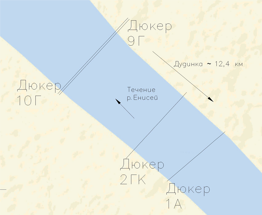 Дюкер 1А, 9Г, 10Г являются подводными переходами через р. Енисей в составе магистрального газопровода «Мессояха-Норильск», который предназначен для транспортировки природного газа, добываемого на Пеляткинском, Северо-Соленинском, Южно-Соленинском газоконденсатных и Мессояхском газовом месторождениях до компрессорного распределительного пункта, расположенного в п.Тухард, а также до газораспределительных станций, расположенных в Норильске (ГРС-1, ГРС-2, ГРС-3) и в Дудинке (ГРС-4).