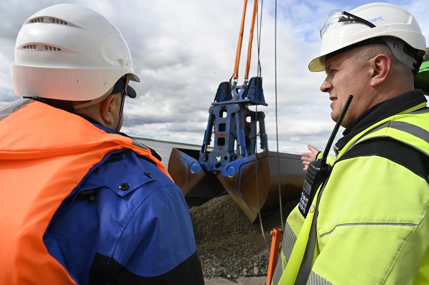 Работы ведутся последовательно по четырём участкам дюкеров с июля по сентябрь 2025 года. Сначала щебень загружается на борт баржи Общества и направляется к месту проведения работ подрядчиком, швартуется с многофункциональной баржей, после чего краном, с помощью грейфера объёмом 17 куб.м., производится погружение и отсыпка оголённых участков. Процесс контролируется навигационным оборудованием. По завершении каждого цикла проверяется профиль дна с помощью промеров, чтобы убедиться в достижении заданных показателей.